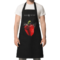 Black kitchen apron from the Wild Atlantic Way collection with bell pepper artwork print.